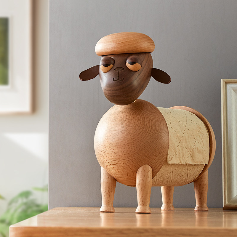 木兰木艺丨羊咩咩纸巾架创意轻奢桌面卡通趣味动物摆件礼品收纳架热门设计联盟服务商