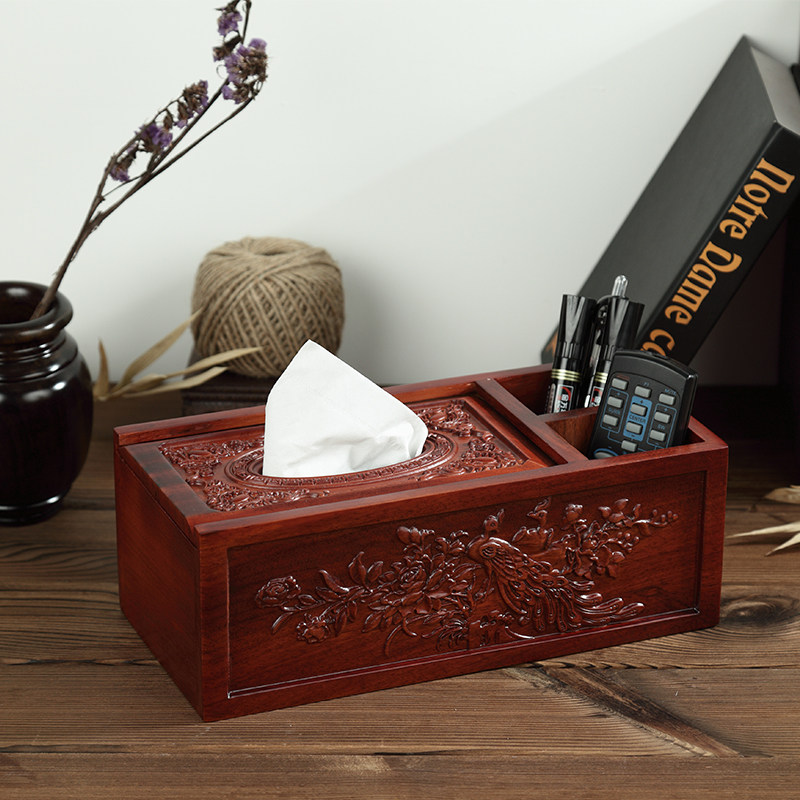 中式木质茶几遥控器收纳纸巾盒多用抽纸盒家用手机收纳盒创意实木热门设计联盟服务商